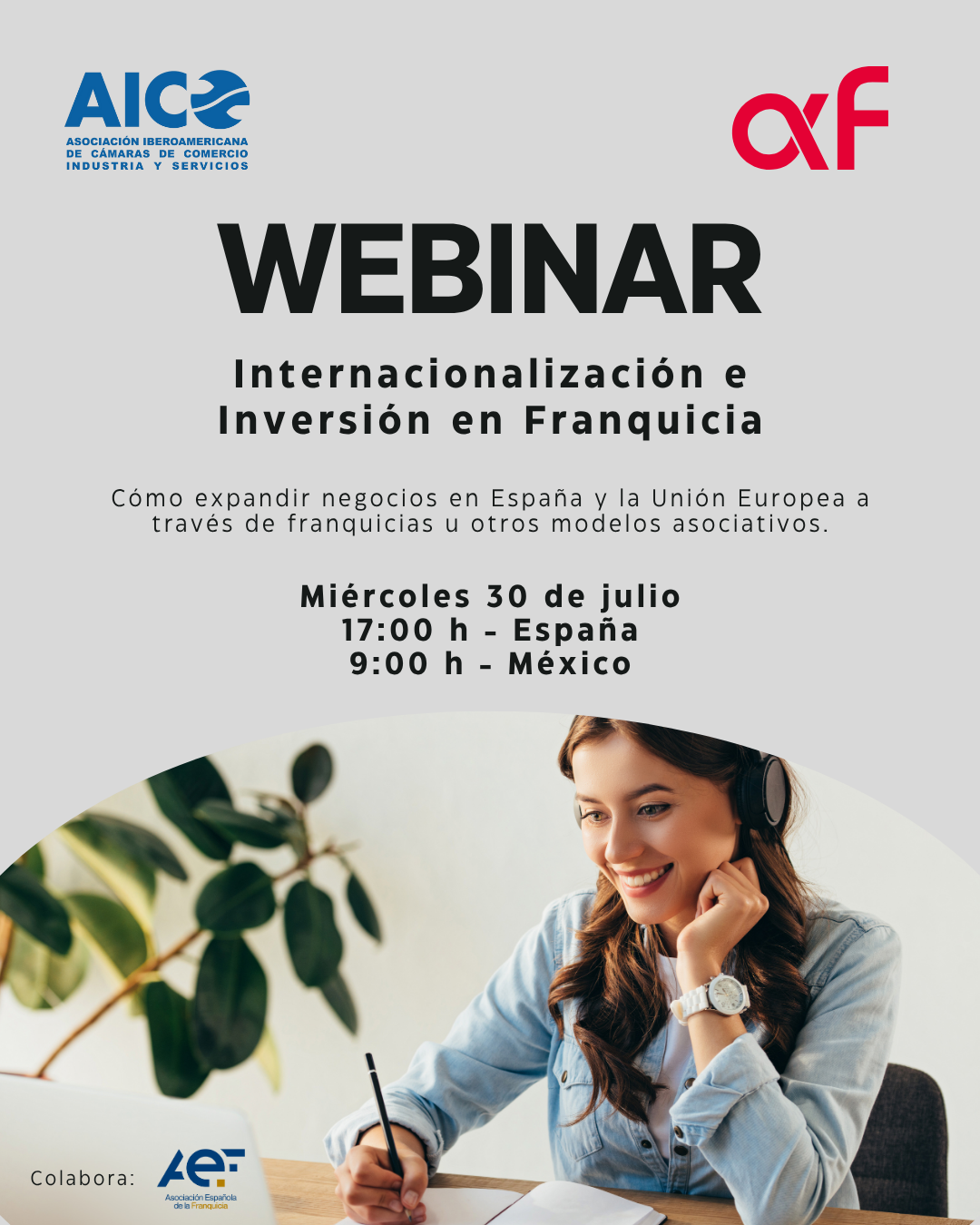 Webinar “Internacionalización e Inversión en Franquicia: Cómo expandir negocios en España y la Unión Europea a través de franquicias u otros modelos asociativos” Registro aquí + Añadir Google Calendar Exportación + iCal / Outlook Fecha Jul 30 2025 Finalizado! Hora 09:00 - 10:00 Categoría Webinar Compartir este evento