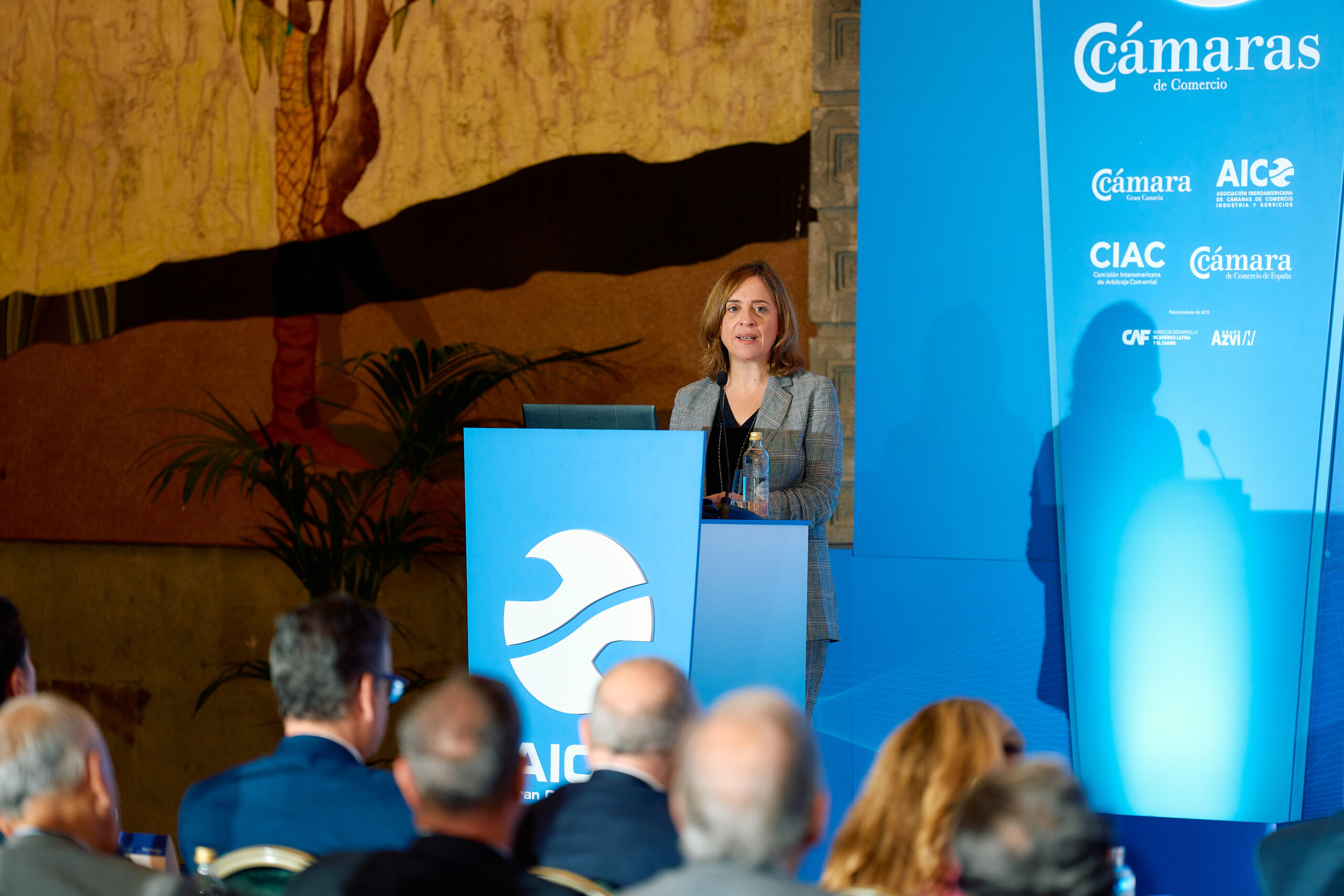 Luis Padrón, Presidente de la Cámara de Comercio de Gran Canaria, Anselmo Pestana, Delegado del Gobierno en Canarias, Natalio Mario Grinman, Presidente de AICO, Susana Sumelzo, Secretaria de Estado para Iberoamérica y El Caribe y el Español en el Mundo, José Luis Bonet, Presidente de la Cámara de Comercio de España, Amparo López, Secretaria de Estado de Comercio y Adolfo Díaz-Ambrona, Secretario General de la Cámara de Comercio de España.